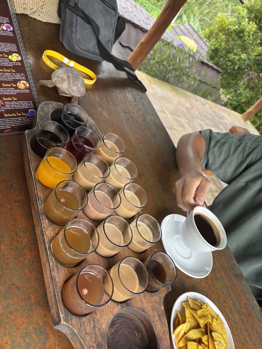 The vibe is informal and educational rather than rushed – guests often mention being warmly welcomed and guided through the traditional Luwak coffee process, with opportunities to see the civet cat involved in production. Sampling is central here; you can try a variety of coffee blends and teas before deciding on a purchase, which adds a layer of interactivity not found in typical cafés.